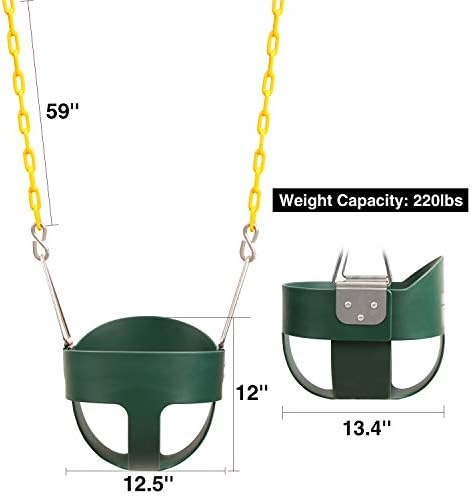 Price: (as of – Details) PREMIUM QUALITY: The High Back Full Bucket Toddler Swing Seat is constructed with durable plastic and heavy duty components. New and improved with updated STAINLESS STEEL hardware with plastic coated chain!WHATS INCLUDED: One high back full bucket swing seat, 59″ of coated chain (can be shortened), two FREE hanging straps