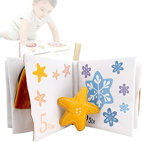 Buit-in Sound Paper Design:Make “rustling”sound when knead the inside page,which would attract baby attention and stimulate baby’s sensory development. Number Cognition: By touching various cute cartoon patterns help babies learn numbers from 1-10 and learn counting .Vivid color attract baby curiosity and attention,develop their thinking and motor skills. Lanyard Design:With lanyard design,easy to storage and save more space.Convenient to take anywhere and anytime.And propriate size that fit baby’s hands ,more comfortable and convenient when reading. Flexible & Durable Fabric:100% polyester fabric soft book is easy to clean,wash by hand make shape and quality retain.Soft and comfortable baby cloth book is the best early education book. Great Toy&Gift for Newborn:Perfect as a birthday, Christmas, Holiday gift. They are exceptional educational gift toys for newborns, infants, and toddlers.