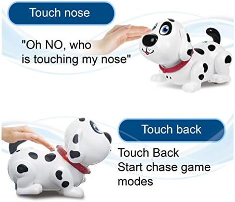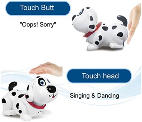 1. Here comes your pet dog Harly, he is a cute robot puppy, he can sing, can dance, can respond to his little master’s touches. 2. With sensors on his head, his back, his nose, his backside, his tail, just touch Harly and he will respond you. 3. Harly will begin to play and chase on smooth desk or smooth ground with bump and go feature, can avoid obstacles automatically. 4. Made of odorless, non-toxic material to allow for the normal touch, Harly will be a good friend for kids, won’t bite, won’t scare kids, safe for kid to play with. 5. Harly is not only a singing dancing robot dog to bring fun, but an educational toy to improve toddler’s hand-eye coordination, visualization, will be a great birthday gift for kids age 2+.