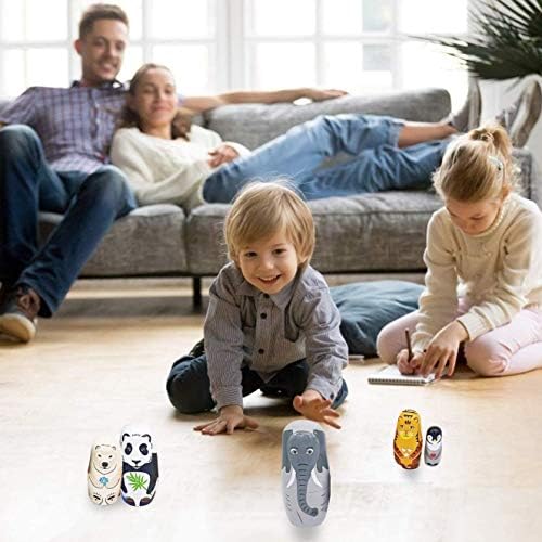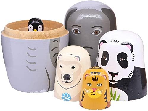 Russian Nesting Dolls Matryoshka Dolls Panda Polar Bear Elephant Penguin Tiger Wooden Stacking Dolls for Kids Handmade Cute Cartoon Animals Nesting Dolls for Birthday Gift Set of 5pices Arita