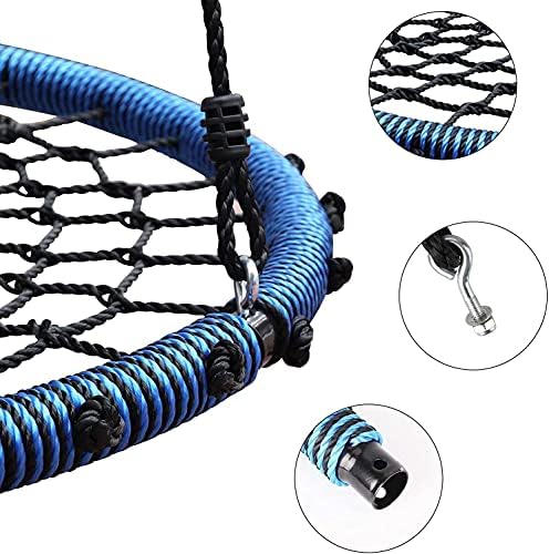 Max. Load 750 lb Material: Alloy Steel, Canvas Seat Dimensions: 40 inch 750lbs Weight Capacity – Our saucer swing set is made of heavy-duty frame, sturdy fabric cover and durable rope webbing that can hold up to 750lbs on its resilient spider webbing. The heavy duty design of the swing enables it to be used for intensive play without worrying about falling off during use. 40inch Round Swing – The 40-inches round swing platform that connects with the four hanging ropes is large enough for 5 children. It provides an incredible platform where kids can burn a lot of energy and enjoy memorable moments with friends and family. Heavy Duty 900D Fabric – The tree swing rope kit is safety constructed by nylon webbing straps and locking carabiners to hang the swing. It is with 10ft adjustable braided rope by the heavy duty 900D fabric that can offer large weight capacity, UV resistant, withstand outdoor exposure and heavy play by rowdy kids. 360 Swiveling Design – Thanks to the swiveling lock design, the 360 swivel tree swing is intended to provide kids with the ability to swing freely without having to feel trapped in the same static move or losing stability. Easy Assembly and Installation – This rope swing quickly assembles and adjusts at the top or bottom, locking quick links. The hang straps safely attach to a tree branch without drilling, friction, and girdling that would damage the tree. It can be easily mounted to a large branch, existing playset, or to a strong tree limb.