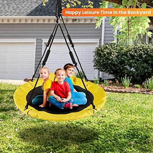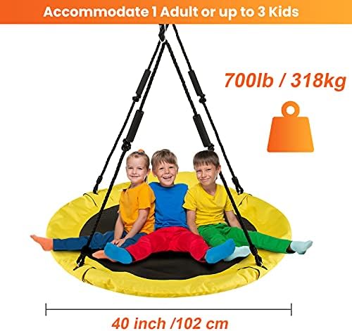 Saucer Tree Swing for Kids, LITTLELOGIQ 40 Inch Outdoor Swing Sets for Backyard, 700lb Capacity, Adjustable Height, Easy Setup, for Adults & Kids – Yellow