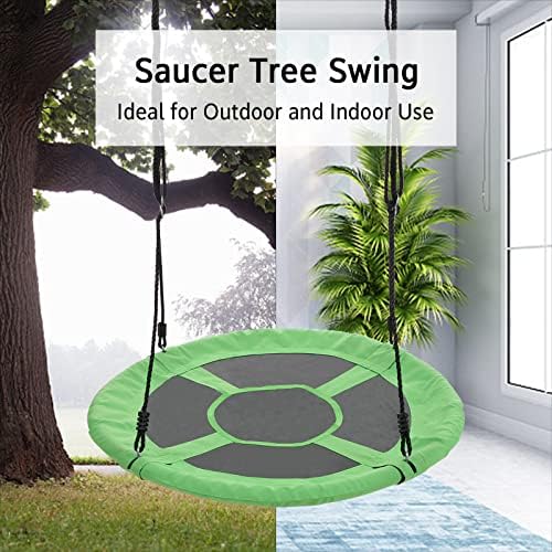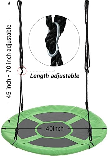 ★Durable Material for Safety & Comfortable: our saucer tree swing is consist of sturdy frame padded with thick foam to make kids comfortable. Thicker ropes and straps can ensure the safety of kids. And this fabric is 900D Oxford Fabric no fading no tearing and waterproof. Weight up to 700lb ★Large Swing for Pleasure: Are you still worrying about your children’s addiction to games and electronic products? Or are you still worrying about your heavy housework and work? Our Saucer Swing is the best choice. It not only enhances the friendship between children, but also allows them to grow up healthily, and also allows adults to relax ★Straps & Thick Rope Included: this 40 inch saucer swing for kids outdoor will come to you with straps and thick ropes. The straps is convenient for you to hang your swing on trees or swing stands. And this strong rope can be adjusted according to the length you need ★Easy Installation & Multiple Use: with detachable design, this large saucer swing can be installed within minutes. and this tree swing is an ideal equipment for your backyard, garden, playground, park, trees and swing stand. Both kids and adults can use this outdoor swing to relax. ★100% Satisfaction: our aim is to pursue your 100% satisfaction, so you will never worry about being not happy with your purchase, just enjoy pleasure time swinging with friends and families. We can solve all problems immediately, if you contact us.