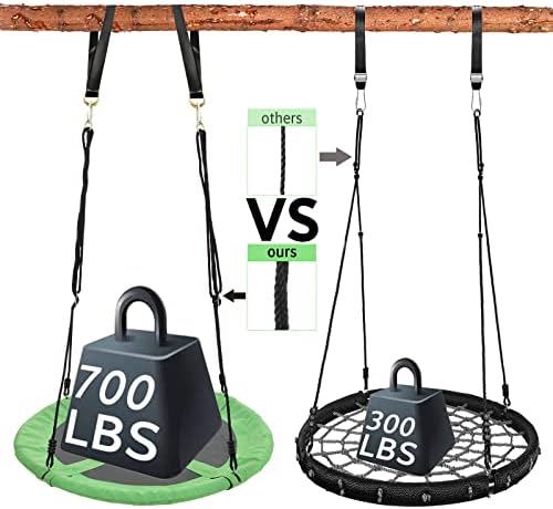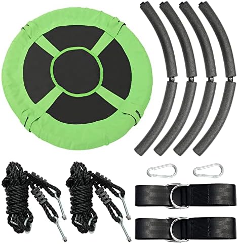 Price: (as of – Details) Product Description Adjustable Ropes and Tree Straps Included Durable Connection with Foam for More Comfortable Saucer Tree Swing for Kids Outdoor ★Durable Material for Safety & Comfortable: our saucer tree swing is consist of sturdy frame padded with thick foam to make kids comfortable. Thicker ropes and straps can ensure