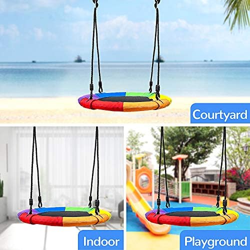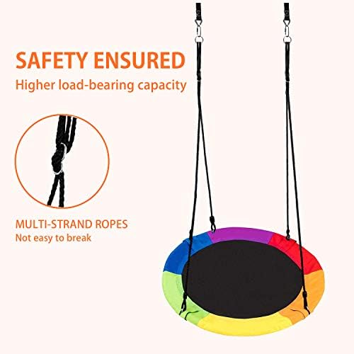 Saucer Tree Swings for Kids Outdoor,Giant 40″ Round Swing with Hanging Kit,700 lbs Weight Capacity,Adjustable Multi-Strand Ropes,Great for Tree,Swing Set,Backyard,Playground,Easy to Install(Colourful)