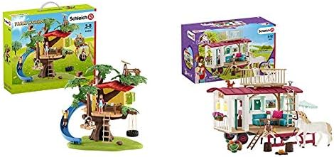 Schleich Farm World Adventure Tree House 28-Piece Farm Playset for Kids Ages 3-8 & Horse Club Camper for Secret Club Meetings 43-Piece Educational Playset for Kids Ages 5-12