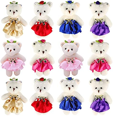 Package includes 4.7” plush dozen of stuffed animal favors with lovely skirt & diamond decoration Bear stuffed animals wholesale toys can use as prize for carnival, party supplies, other activities Build a bear mini clothes with different colors skirts decor for a dozen stuffed animals bears Stuffed animals multi pack of bears are great decoration for wedding, birthday, cake gift box Kids always like assorted stuffed animals, and a miniature stuffed animal often is their first toy