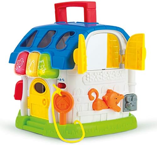 SHAPE SORTER FOR TODDLERS – With a fun baby house design, 6 bright blocks this shape sorter perfectly suits the developmental stage of kids around 12-36 months and improves their Fine Motor Skills. Each block fits in a particular slot, and can be retrieved through the key lock door. MANY WAYS TO PLAY – This shape sorter baby toy has 2 noise modes (sounds and music) and multiple ways to play. Babies and toddlers will enjoy exploring the lights, sounds, colors and textures, as well as manipulating the various features such as the roller door and clock. LONG-LASTING TOY – Designed for babies age 1 year, this baby house is a hit with older siblings too, making it the perfect gift. Whether they’re playing alone, or perhaps a toddler is showing the baby how it works, this little house will be a must-have toy for years to come. DEVELOPMENTAL TOYS – Helping kids develop dexterity, problem solving and other skills while they play, this toddler activity center has lots to offer. As kids grow, they will master new skills, such as unlocking the door with the attached key, and begin to use the house in imaginative play with toy dolls or animals (not included). ASTM CERTIFIED – Safety and quality are essential when choosing kids toys. Bambiya toys are toys you can buy with confidence. Designed to be robust and strong, these toys are always ready for kids to play. Created using premium, non-toxic materials, the toys are thoroughly tested to ensure they meet US safety standards.