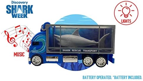 Price: (as of – Details) Product Description From The Manufacturer This Shark Week rescue transport truck is carrying a raging Shark. It has got emergency lights and sounds to it. Their are detailed buttons on the top of truck. On the press of a button, the Shark shakes vigorously and makes out a loud shark