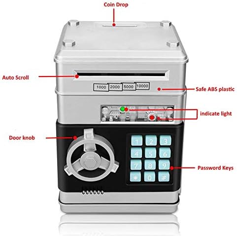 Shinetoys Ave 28th Kids Electronic Password Auto Scroll Paper Money Box Safe Piggy Bank (Silver)