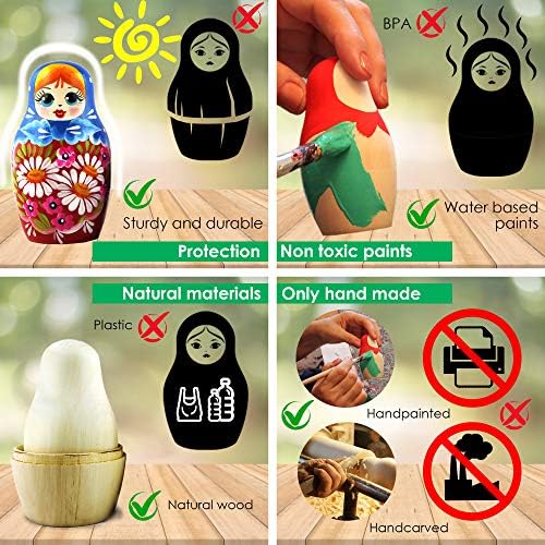 Price: (as of – Details) Russian matryoshka dolls are great home decor gift and educational nesting toy. Main features:– Stacking dolls wooden set includes 5 pcs;– The largest matreshka doll is 3.5 inches tall; smallest is 1 inches;– Plain nesting dolls made of alder or aspen wood;– Decorated acrylic paint;– Finished with acrylic varnish.Authentic Russian