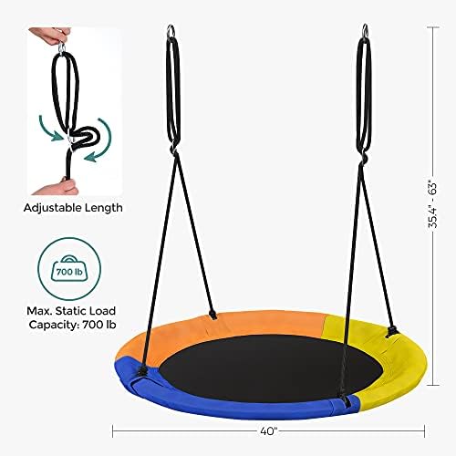 SONGMICS Saucer Tree Swing for Kids Adults Outdoor Indoor 40 Inch 700 lb Load Textilene Fabric Includes Hanging Kit Heavy Duty Safe Durable Easy Install for Backyard and Home Multicolor UGSW001Y02