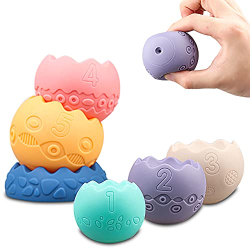 Price: (as of – Details) Product Description Miawow stacking ball toys 6 month old and up baby toys ball Stacking toys for toddlers babies are interested in stacking then knocking down the stacker and remade Soft toys for babies soft and durable, easy to squeeze, making a squeak sound Montessori toys for babies 6 PCS