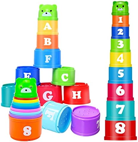 ✓ 8 pieces included ✓ Indoor/outdoor universal ✓ Good containerIn addition to stacking, you can also let your baby play with water in the bath ✓ The cup has animalsMaximize the innocence of babies ✓ The perfect gift Exquisite workmanship is a gift for children. It is a wonderful and exquisite gift. ✓Color perception The colorful design attracts the attention of babies, allowing them to exercise their color perception ability during training so as to enjoy the beauty of the world. ✓High quality materials The baby stack is made of high-quality plastic materials to ensure maximum durability. The finely polished surface has no burrs, which can ensure the safety of children’s play. ▲▲▲Recommended age: 6+ month 🌈[Classic Colorful Baby Stacking Cups Toy]: cups of eight colors can be stacked anyway.Baby can stack them up,knock them down, nest inside each other, splash around, or build a sandcastle.Intended for babies, toddlers and early learners of 6 months to 3 years old. ✨ [Build Up Skills while Playing]:As a learning & education toys, each color cup represents a color, and the cup body has a combination of numbers and letters, which can be used to practice calculations and learn letters.Stimulate their hand-eye coordination and flexibility through simple touch or overlay. 🎉[Make It Playtime, Anytime!]:These colorful stacking cups can be used in many kinds of play such as: stacking, nesting, shape sorting, bath toys, beach toys, and more. Stack them high, nest inside each other, or knock them down again and again indoor or outdoor.Create the craziest sand castles and towers at the beach. Kids can also use them to play in the water while bathing. 💚[Friendly to the Human Body]: does not contain BPA, lead and other harmful substances to the human body.100% meets toy standards. learning while playing. Smooth edges without burrs,does not hurt the baby’s delicate skin. 💟 [100% Satisfactory Service]: If you have any questions, or if you think all the content does not match the description in the advertisement, please feel free to contact us and we will reply within 24 hours.