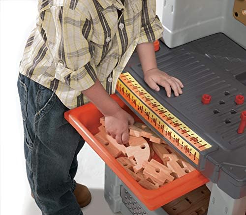 The Deluxe Workshop by Step2 is the ultimate toy tool workshop for a child’s play room. Kiddos will make believe they’re a carpenter or designer as they create wooden masterpieces with Durafoam. Children can pretend to be a handyman or handywomen as they use their toy tools to build the ultimate project. This tool workshop for kids is large with plenty of space and accessories for multi-child play. Made in USA of US and imported parts. Adult assembly required. Plastic Imported Deluxe workbench with large work surface for the little builder who loves to work with their hands 50-piece accessory set Includes an electric drill, 2 drill bits, 8 screws, 8 nuts, saw, hammer, pliers, adjustable wrench, screw driver and 17 “wood” pieces Has bins and jars for storage, spring action vise and pretend shop vac Unique realistic-looking “wood” is made from indestructible Durafoam (Instructions included for 4 projects)