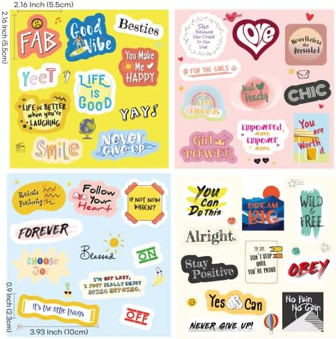 Stick ’em All Aesthetic Inspirational Sticker for Water-Bottles Laptop Scrapbook Journaling, Vinyl Waterproof Sticker Packs for Women Girls Adults, Cool Vsco Decals