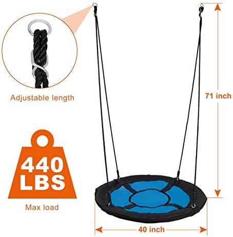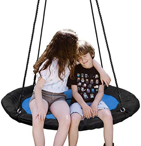 ★ TAKE YOUR BACKYARD TO THE NEXT LEVEL! Why settle for boring, cheaply made tree swings when you can really impress your kids with a full size saucer tree swing? Turn your backyard into an adventure playground, swinging to your heart’s content. Swing alone or swing with a couple friends, it’s time to have some fun Between standing and sitting on the swing, the options are limitless. ★ IT’S ALL ABOUT CHILDREN’S SAFETY! We take safety and quality seriously and unlike other companies, it’s not just lip service. Our saucer swings can handle up to 440 lbs. and is built out of the strongest materials we could find like 600D Oxford polyester and commercial grade steel for the frame. EASY BREEZY INSTALL With your saucer swing, you will also receive detailed, step by step instructions on how to put this swing together. ★ POWERFUL CORROSION PROTECTION AND UV-RESISTANCE! Unlike other tree swings that are made on the cheap and rust, SUPER DEAL saucer swing is weather resistant and can handle years of rain and snow with ease. Rain or shine, this swing is made for the outdoors. ★ EXTRA LARGE SIZE. Very Large Size The tree swing is 40 inch diameter large enough for multiple children to play together.They don’t have to take turns waiting for each other to get off,they can all get on at once. ★ When you purchase your Super Deal Saucer Swing today, here’s what you should do… As soon as the courier delivers the box from Amazon to your door rip it open, take out your swing and delight in the bright blue/purple quality canvas and sturdy metal construction. Hang it from a branch, and let your kids experience the sensation of flight at home!