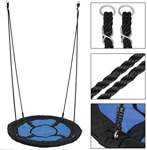 SUPER DEAL 40″ Waterproof Saucer Tree Swing Set – 360 Rotate° – Attaches to Trees or Existing Swing Sets – Adjustable Hanging Ropes – for Kids, Adults and Teens, 3 Colors (Bright Blue)