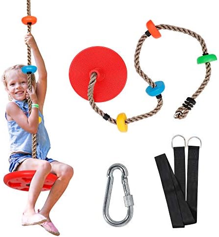 SUPER DEAL 6.6FT Climbing Rope Tree Swing Set with Multicolor Platforms and Disc Swing Seat for Kids – Bonus Carabiner and 5FT Strap for Outdoor, Backyard, Playground, Garden, Tree House