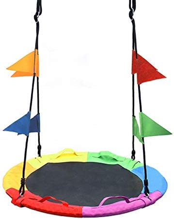 SURPCOS Saucer Swing for Kids Outdoor with Handle – Round Outdoor Swings for Swingset – Large Tree Swings for Children with Hanging Kit – Heavy Duty Children Disk Swing for Outside, 40″ (Rainbow)