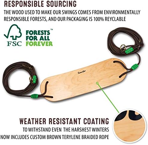 Swurfer Sway Premium Coated Maple Wood Swing for Tree, Kids Swing with Strong Braided Rope – Holds Up to 150 Pounds, Brown