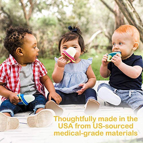 ✅Baby Food Feeder: Turn your teetherpop into a baby puree feeder by simply filling with baby purées, such as all-natural Plum Organics. Also great in place of, or in conjunction to your refillable baby purée pouches! For more flow, thin the mixture with water as needed. ✅Freezable Teethers: Freeze for an added treat. Once chilled, remove the icy cold teether from the freezer and run under warm water to remove cover. Our frozen teether offers soothing relief. teetherpop baby teethers are a great substitute for teething popsicle molds and a creative option for breastmilk freezer storage containers. ✅USA Made Teether: teetherpop baby teethers are thoughtfully made in the USA from US-sourced, approved high grade materials. Our silicone teether is BPA free, PVC free, Latex free and Phthalate free. You no longer need to worry about what’s in your baby’s teething ring. Plus, teetherpop teethers are dishwasher safe, and the high-quality silicone teether reservoir does not retain odors or stains. ✅For Ages 6+ Months: Our freezable teethers are designed for ages 6+ months and are a trending alternative to a fruit teether or baby fruit feeder. They’re also a pleasing less messy substitute to traditional popsicles for toddlers, too!