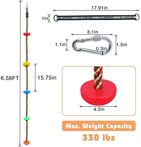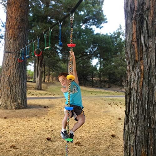 🧗♂️【Support up to 330 lbs】- Your kid’s safety is our priority! Constructed with sturdy foot holds (Dia:4 in.) and a ultra thick 6.56ft PE rope which all passed ASTM F 963-11, this Kid’s Climbing Rope can hold weight up to 330 lbs (approx. 1 adult + 1 kid), safely supporting your kids all the way up and down. Great for age 3+ . 🧗♂️【Nonslip Colored Foot Holds】 – Colorful climbing rope and 5 vivid-colored foot holds attract children’s attention and stimulate them to exercise while climbing. Textured hold top ensures nonslip footing to prevent kid from falling off. 🧗♂️【Wear-resistant & Comfortable to Hold】- Soft yet sturdy ninja climbing rope is comfortable to grip without chafing little hands while climbing. 4-inch holds provide large footing area for effortless climbing. 🧗♂️【Install In Seconds】- Simply attach the disc climbing rope via caribiner and hanging strap to any sturdy tree branch, ceilings, slack line, play set, monkey bar. Indoor & outdoor use. 🧗♂️【Package Included】- 1 x Ninja Climbing Rope , 1 Caribiner, 1 x Hanging Strap. Great for children exercise and development to promote kids strength, balance flexibility and endurance while having fun.