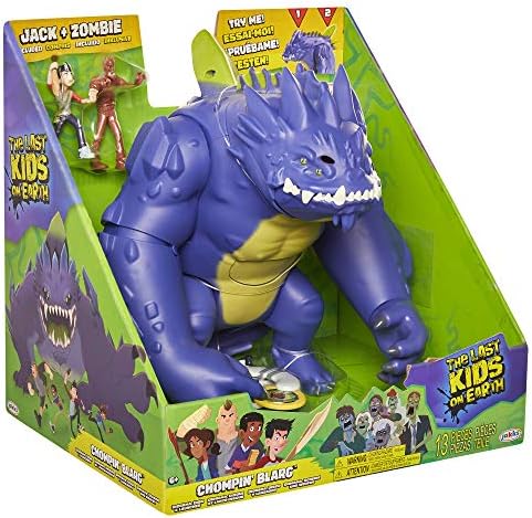 Based on the New York Times bestselling book series and Netflix series, The Last Kids on Earth features 13-year-old Jack Sullivan and his best friends Quint, June, and Dirk as end of the world heroes! The friends battle monsters and zombies, go on adventures, and try to survive and thrive in a post-apocalyptic world. With homemade gadgets, a tricked-out truck named Big Mama, and their friendly monster pet named Rover, they fight evil and make a home in their Tree House Fortress of Awesomeness. Battling villainous monsters transported to Earth during the apocalypse such as Dozers, Winged Wretches, and the evil Blarg, Jack and his friends fight to survive and bring peace to their home town of Wakefield. The most feared monster from Book One, Blarg hunts and follows Jack and his friends around Wakefield bent on total destruction of anything within his path. With his jagged teeth, four eyes, and terrible breath, Blarg battles Jack in the ultimate showdown. This 9 inch scale monster figure has 7 points of articulation for posing. Push down on Chompin Blarg’s large spike on his back to grab a zombie and raise it to his mouth. Press the smaller spike on Blarg’s head to open his mouth and chomp the zombie! Hit Blarg in the sweet spot on his belly with the launcher and watch him fall in defeat. An Exclusive Jack figure is included to re-creates the ultimate showdown with Blarg. Chompin Blarg comes with 1 exclusive Jack figure, 1 launcher, 1 disk, and Wakefield school environment made of 6 diorama pieces.