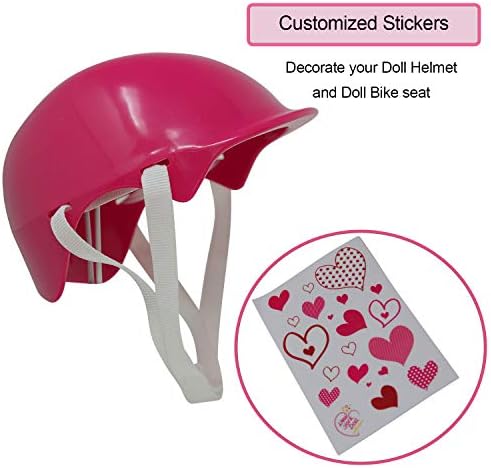The New York Doll Collection Doll Bike Seat Carrier for Baby Dolls & American Girl Dolls with Doll Helmet & Stickers. No Tools Required Bicycle & Scooters Seat Accessories for Dolls, Pink