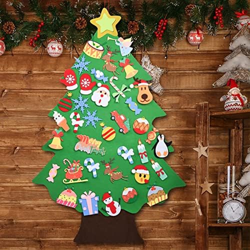 🎅 OVERVIEW – 1pc 3.5 ft DIY felt Christmas tree + 38pcs detachable ornaments( Santa Claus, snowflake, Christmas reindeer, Christmas socks, Christmas hat, candies, bells, etc), great for Christmas party decorations. 🎅 SAFE MATERIAL – The felt material are safe and durable, the hook & loop was sewn on the felt material tree, and the wiring is very strong, Not easily pulled away by a child. And unlike glue, it doesn’t stick easily. 🎅 FOR KID – It is suitable for children over 18 months to play. This activity is great for eye-hand coordination, fine motor skills and color recognition. It’s the perfect gift for Christmas. Children under 18 months of age may be accompanied by an adult. 🎅 EASY TO USE – Just stick the ornaments on the fasteners. Decorate your own Christmas tree you like! One set fits most! Tie your Xmas tree then hang it on wall by hook or nail. Unique kids felt Christmas tree, it comes with a lot of different ornaments. 🎅 WARM NOTE – We are folding packing, so when it arrives, you could using an iron make the tree perfect to hang it on wall or door, and you can use it again and again.