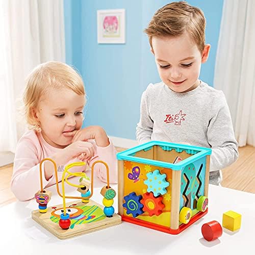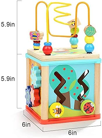 Exploration and fun is around every corner with the Top Bright activity cube. Each side of the toy introduces a way to play a different game, including shape sorter, spinning gears , sliding inserts, teaching clock and bead maze, which perfectly meets little explorers’ requirement.The versatile activity cube will keep 1 year old girls and boys who are curious about the whole world engaged while developing their mind and coordination skills.
