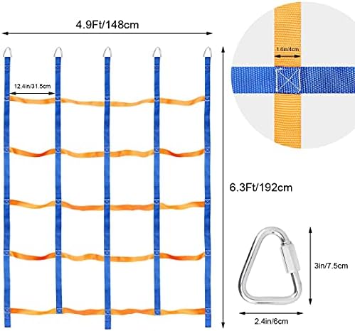 Price: (as of – Details) Product Description Specification Material: polyester Size: 6.3 x 4.9Ft Package included: 1 x climbing net, 5 x carabiner hooks The ninja net comes in vibrant blue alternating with orange The maximum bearing capacity can be weighed up to 600lb. CLIMBING NET FOR KIDS WONDERFUL PLAY ACCESSORY Our blue-orange climbing net