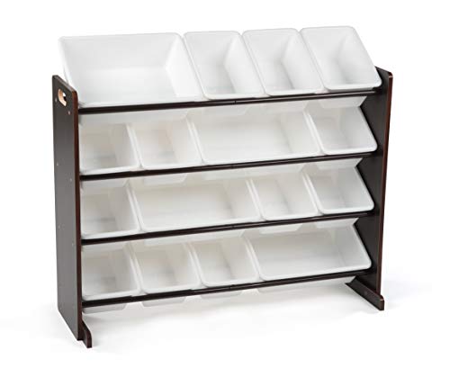 Tot Tutors WO142 Extra-Large, Supersized Toy Storage Organizer White Bins, Espresso Collection