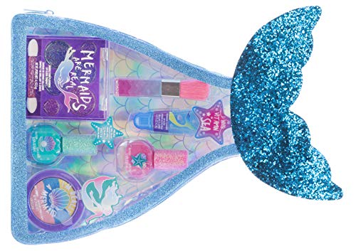 With 8 Pieces, Including Lip Gloss, Nail Polish, Body Shimmer and More in Mermaid Bag, Ages 3+ for Parties, Sleepovers and Makeovers