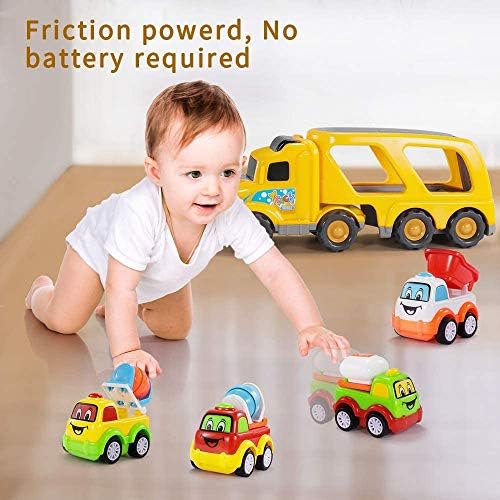 Toy for Boys Girls for 3 4 5 Year Olds Kids Construction Truck Friction Power Toy Vehicle Set Steering with Lights & Siren Sounds,Carrier Truck,Transport Car,Toy Excavator,Cement Mixe,Gifts Toddler