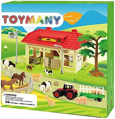 ✔[ LARGE FARM ANIMAL BARN SET ] – TOYMANY 61PCS farm animal playset for kids includes 1 pile dwelling (1 roof, 4 walls, 1 floor, 6 doors, 7 fences, 1 shower head, 2 bathroom panels, 1 food trough, 4 ramp pads), 11fences & 2 fence gates, 10 animal figurines, 1 tractor with cage, 1 tree ( 6 large leaves and 1 trunk), 1 flag and 1 street light. Get ready to create your own farm scenes with this farm house playset! ✔[ REALISTIC DETAILS] – This farm animal toy with high realistically detailed appearance which restore the real farm scene. All farm animals uniquely molded textures and richly painted details make the animals vivid. And all the animal figurines stands up very well, they do not fall over. Children would like to spend more time to observe and play with them. ✔[ SAFETY MATERIAL] – TOYMANY farm animal barn set made by high quality durable PVC plastic, Non-Toxic Paint and Odorless. All are made of child-safe materials and have undergone thorough safety testing to protect your child’s health. TOYMANY aims to produce more realistic and higher-quality animal figures for customers. ✔[ FARM EDUCATIONAL TOY ] – This farm barn and animals set was great for education purposes, creative play, party favors, school projects. It will help to improve children’s concentration and outsight, develop and train their imagination and creativity. ✔[ BEST GIFTS] – This farm animals toys for kids are worth to be collected, decorating children’s bookcase, desk and room. It’s an awesome Christmas Birthday gift for kids. Parents can tell the children stories about the information of the farm animals, it will improve the parent-child relationship.