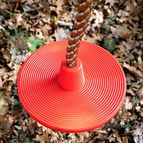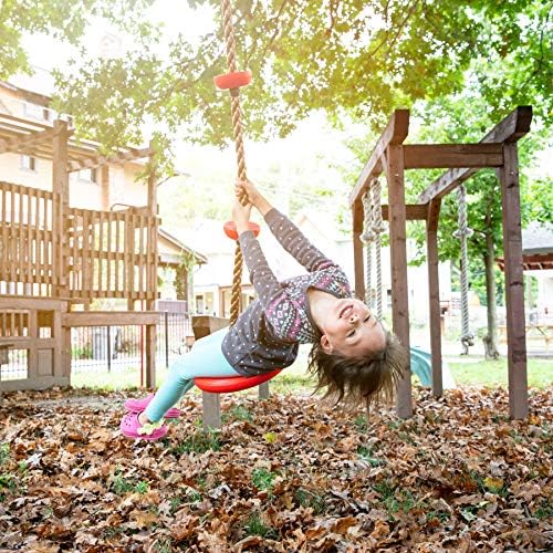 Tree Climbing Rope and Kids Swing: Climbing Rope for Kids with Foot Hold Platforms, Disc Tree Swing Seat, and Hanging Kit with Tree Strap – Outdoor Swings and Swing Set Accessories – Rope Swing, Red