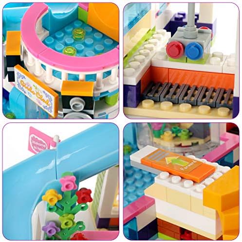 Total 1274 pieces friends treehouse and swimming pool building blocks in a storage bucket, easy to carry, collect and clean. Featuring 4 sports cars, slide, garden, food stand etc. The friends tree house and pool party building sets are compatible with other name brand blocks for creative building. Kids can use their imaginations to blend other blocks and create more extraordinary buildings. With the step-by-step instruction sheet, it will keep your kids busy for hours to assemble the whole treehouse set, they can also work with friends or parents to enjoy the building process. Exercise N Play Treehouse and pool party building kit delivers an enjoyable build-and-play experience. The detailed buildings stimulate imaginative, open-ended role play for kids of all ages. This swimming pool and treehouse building set sparks imagination, offers endless fun, makes an impressive Christmas holiday, birthday or any-other-day gift for boys and girls age 6 years and up.