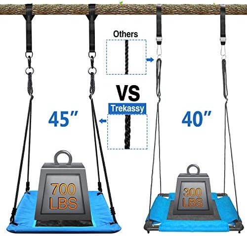 ✅STURDY LARGE PLATFORM SWING: Large 45″ steel frame with Textilene fabric seat, larger space can accommodate 5 kids or two adults. More Comfortable and Less Crowded to sit on. Weight rated to 700 pound, safer for child to swing for a long time. ✅SWING STRAPS INCLUDED: Our tree swing include 2 pack 10ft 2000lbs tree straps. No need to buy extra straps or other accessories. ✅UPGRADED TEXTILENE CIRCLE SWING SEAT: Made of high quality textilene material, the spacious swing seat is wear-resistant,UV-resistant and Non-fading,lasts much longer than swing in other material, bring you comfortable sit and swing in all weather. ✅DURABLE HANGING ROPES: Extra 71 inch long 12mm thick ropes are made from high quality PE webbing with metal rings for secured fastening. Adjustable length between 47 and 71 inch. Strong UV resistant and won’t fade for years. ✅EASY TO ASSEMBLE: This round tree swing for outside includes step by step picture instructions, complete hardware and mounting gears. You can easily attach in minutes. Backyard swing or playground fun for kids, teens, and adults.