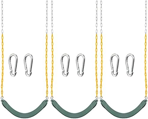 TURFEE 3 Pack Green Swing Seats Heavy Duty with 66″ Chain, Swing Set Accessories Replacement with Snap Hooks for Kids Outdoor Play Playground, Trees, Swing Set, Backyard (Limit 250lb)