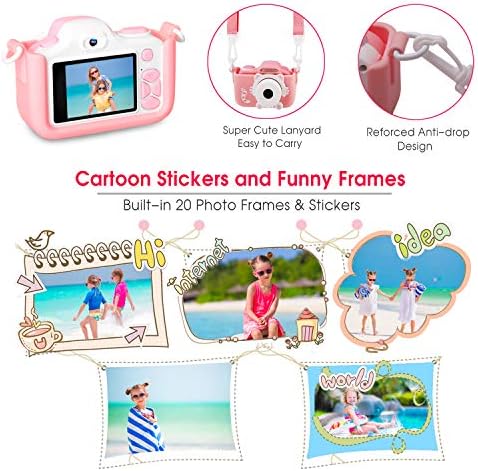 🎀【Children’s Digital Camera】&🎀【12MP+1080P】The kids camera comes with 2 inch IPS full view screen and 12 million pixels, greatly improve photo definition and image quality.