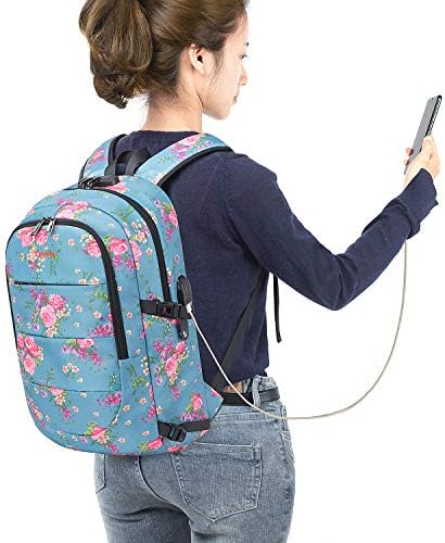 Tzowla Business Laptop Backpack Water Resistant Anti-Theft College Backpack with USB Charging Port and Lock 15.6 Inch Computer Backpacks for Women Girls, Casual Hiking Travel Daypack(A-FlowerBlue)