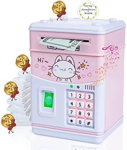 Price: (as of – Details) Excellent features of electronic piggy bank with fingerprint : 1.Cultivate financial awareness: electronic piggy bank is Not only a toy, but also a great educational tool to cultivate children girls boys’ good financial wealth awareness and habits. 2.Simulated fingerprint piggy bank:makes this electronic kids bank more sensitive to technology. 3.Auto rolling