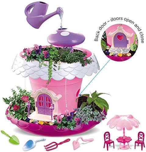 Vokodo Kids Magical Garden Growing Kit Includes Tools Seeds Soil Flower Plant Tree House Interactive Play Fairy Toys Inspires Horticulture Learning Great Gift for Children Pink