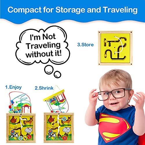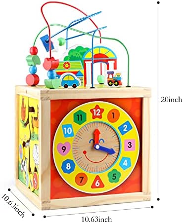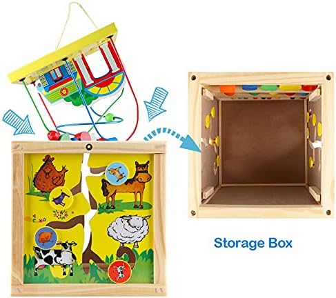 5 IN 1 TOY SET: This activity cube toy includes 5 games, a bead maze above for fining baby hand movements, a teaching clock for guiding todddler to learn the time, 4 animal matching maze for recognizing animal and exercise visual tracking ability, 1-9 number board for learn numbers, colorful abacus shape blocks for promoting cognition and observation, funny learning toy UNIQUE STORAGE BOX:Besides activity game center, it also a storage box, and kid’s other small toys can be stored in the middle of the box when the bead maze placed on it, you can also turn the bead and put it in the box to save space EDUCATIONAL GIFTS FOR KIDS: Toddler activity cube is good toy for birhday christmas gifts for 3 years old up girls boys, Educational, fun, safe and parent-approved, this baby wooden toys will put a big smile on babies cute face, perfect toy is indispensable for children’s growth FUN LEARNING TOYS – This magnificent toddler educational one year old girl toys set is designed to promote counting and math skills, while also developing color, pattern and shape recognition in an engaging, fun and interactive way. These toys will be passed down and become the favorite learning toys for 3 years old up SAFETY MONTESSORI TOYS: Bead maze toy is made of 100% natural wood with all edges are smoothed. Covered with water-based paints, approved ASTM and CPSIA test, safe for every child to play, our multifunctional educational toy is larger than the same toy on the market. Providing customer best product and service is Tollon aim, If you have any question about the product, please feel free to contact us by mail
