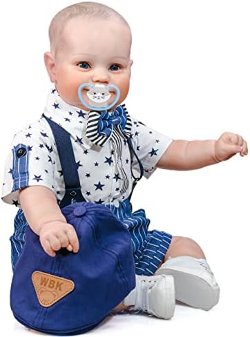 Wamdoll 24 inch 60CM Big Size Reborn Baby Newborn Toddler Boy Barnett Hand Drawing Hair Sweet Smiling Soft Weighted Body Flexible Collectible Art Doll Early Education