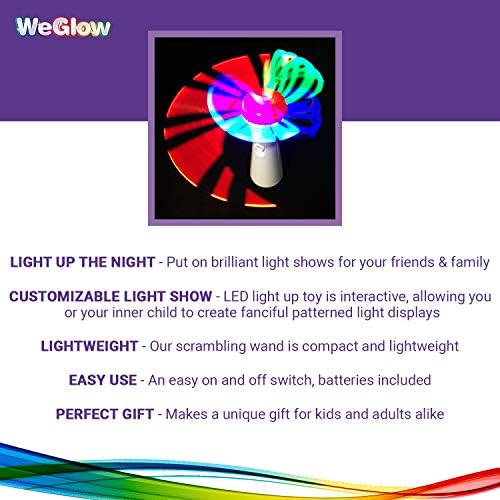 WeGlow Spinning Light Up Wand | Glowing Multi-Color LED Light Light Spinner In Wild Sensory Patterns | Spinning Light Toy For Children with Autism, Party Favors, Carnival Prize | 2 Pack with Batteries