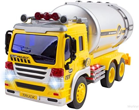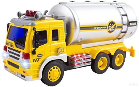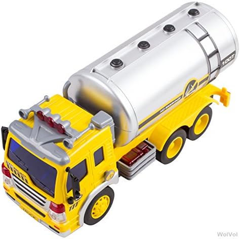 FRICTION POWERED: The WolVol Friction Powered Oil Tanker Truck is powered by friction so it will run when you roll it. Watch as little hands push the truck a little and let it go a good distance on its own while making an engine-like sound. HIGH-QUALITY CONSTRUCTION: Providing long-lasting strength and use, this Friction Powered Truck is expertly crafted of durable plastic to withstand bumping into walls and endless hours of play. LIGHTS & SOUNDS: Truck sounds and attractive lights enhance the fun even more. Children will be thrilled as they push the buttons on top of the tanker to activate the lights and sounds over and over again. IMAGINATIVE PLAY: Realistic features and multiple sounds encourage little ones in imaginative, role-playing fun as they make the rounds from house to house delivering oil to ensure customers have heat and hot water in their homes. GREAT GIFT IDEA: With lights, sounds and friction powered go action, the WolVol Oil Tanker Truck makes the perfect gift for birthdays, holidays and other gift-giving occasions. Both boys and girls will entertain themselves for hours.