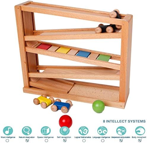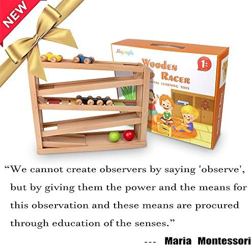 ❤️ MOM’S PRIORITY CHOOSE ❤️: Get set and go! This smart gift answers to a 1 year old boy and girl’s need to practice independence and will keep them busy while you are dealing with other chores. Each car flips at the end of a ramp to continue to the next. Learn about cause and effect with this fun Wooden Toddler Race Track , Choose a car, release cars at top of the ramp and let the racing begin! 🎁 TODDLER FESTIVAL GIFT 🎁: Wooden car ramp size 14.1×3.9×11.4 (9.8) inches , weight about 3.5 pounds, including 4 car ramps, Packed in a very beautiful and sturdy color box . This toddler race track toy is compact and sturdy, can be easily stored on shelving or in small room. Suitable for toddler playing at home indoor or outdoor activity, best gift for 1 2 3 year old boy and girl’s birthday , great for parties!your thoughtful gift will put a big smile on their cute little face 🌲 NATURAL WOODEN TOY 🌲:This toddler ramp race track toy is made of high quality wood, BPA Free and stained with bright non-toxic water-based paint,sanded smooth, and finished with safe, manufactured to the highest grade. the wheels can not be pulling out without violent destruction. No concerns about wheels falling off or pieces coming apart. 💡 DEVELOP COGNITIVE SKILLS 💡:Learning Through Playing This toddler race track is a simple and well-built toy, which will encourage the development of your toddler’s hand-eye coordination and attention span. Also, encourages toddlers to cooperate and take turns to play their own race cars on the toddler race track, develop communication skills. For the smallest children such as a 1 2 3 years old kids , they learn dexterity and repetition through playing. 👶 A Note About Migargle’s Wooden Toys 👶: Wood is a natural material and as such, has various unique markings. Variations in wood grain, color, knots, texture or dye transfer are all natural occurrences in these hand-stained wooden products. These unique variations and markings are proof of quality, not defects. Enjoy the markings that make your Migargle’s toy unique!