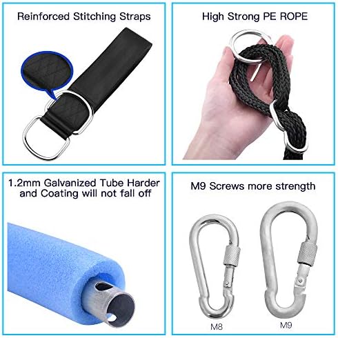 Built with a high quality steel frame, durable polyethylene rope and M9 screws. With a 700 pound weight capacity, it is perfect for adults or multiple kids.